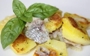 Caçarola caseira saborosa e saudável feita de batatas com arenque. Faça uma apresentação clássica de novos produtos!