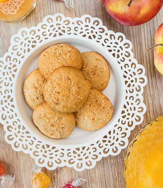 Cookies soltos feitos com cobertura de gergelim e mel sabor e aroma discretos de nozes doces. Faça cookies casa para o chá.