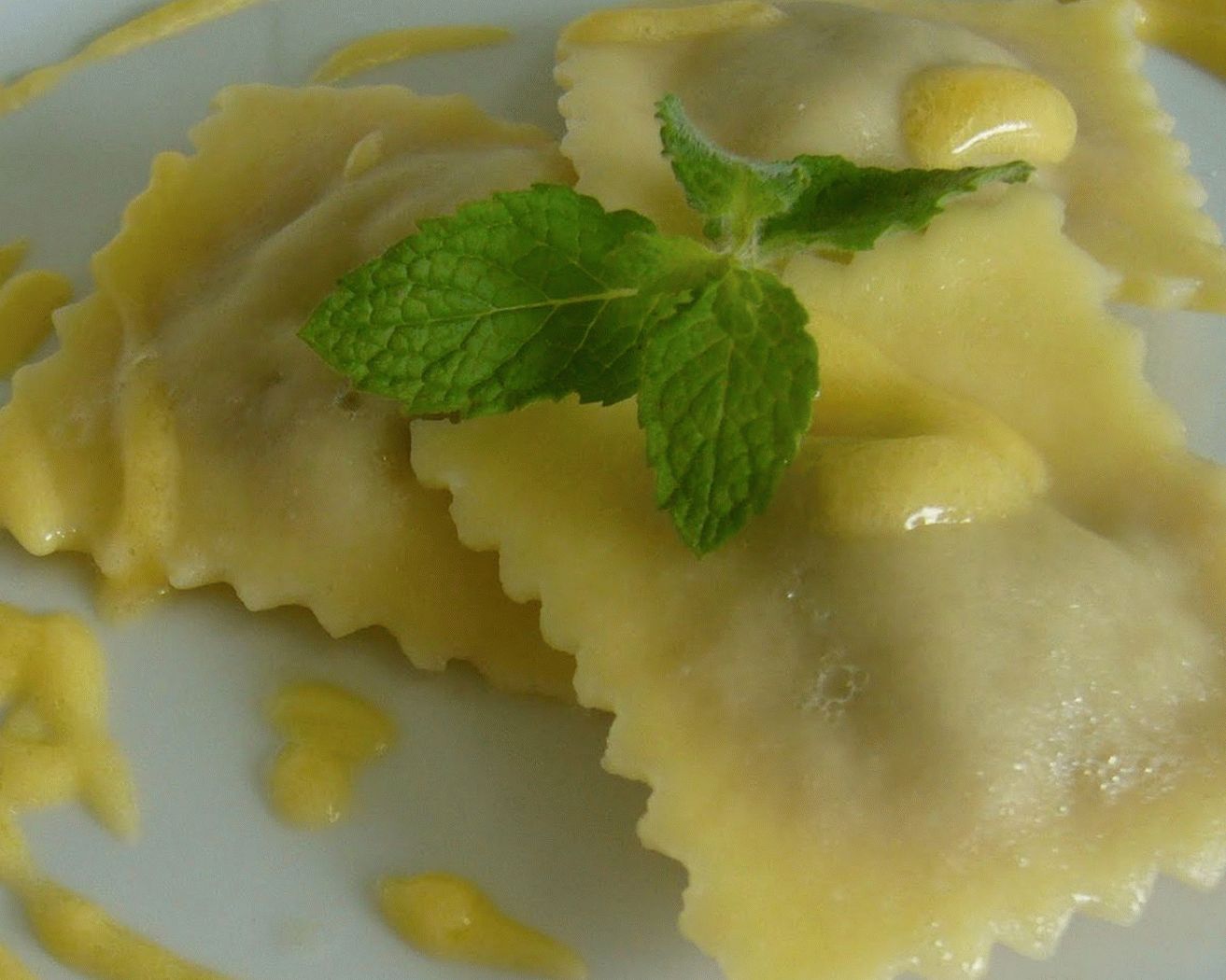 Delicioso ravioli italiano pode ser preparado com diferentes recheios. Oferecemos a você que cozinhe em casa uma opção com queijo ricota macio, raspas de limão e rum. Acontece ótimo café da manhã doce ou sobremesa original.