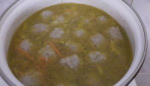 - Esfregue a cebola na carne e quebre o ovo, despeje sal e pimenta e sumy. Amassar, formar almôndegas e enviá-las ao forno água. Sal a sopa.